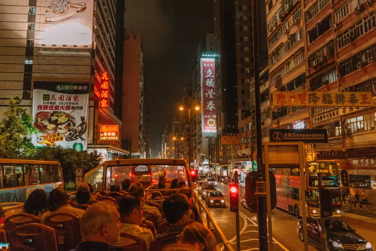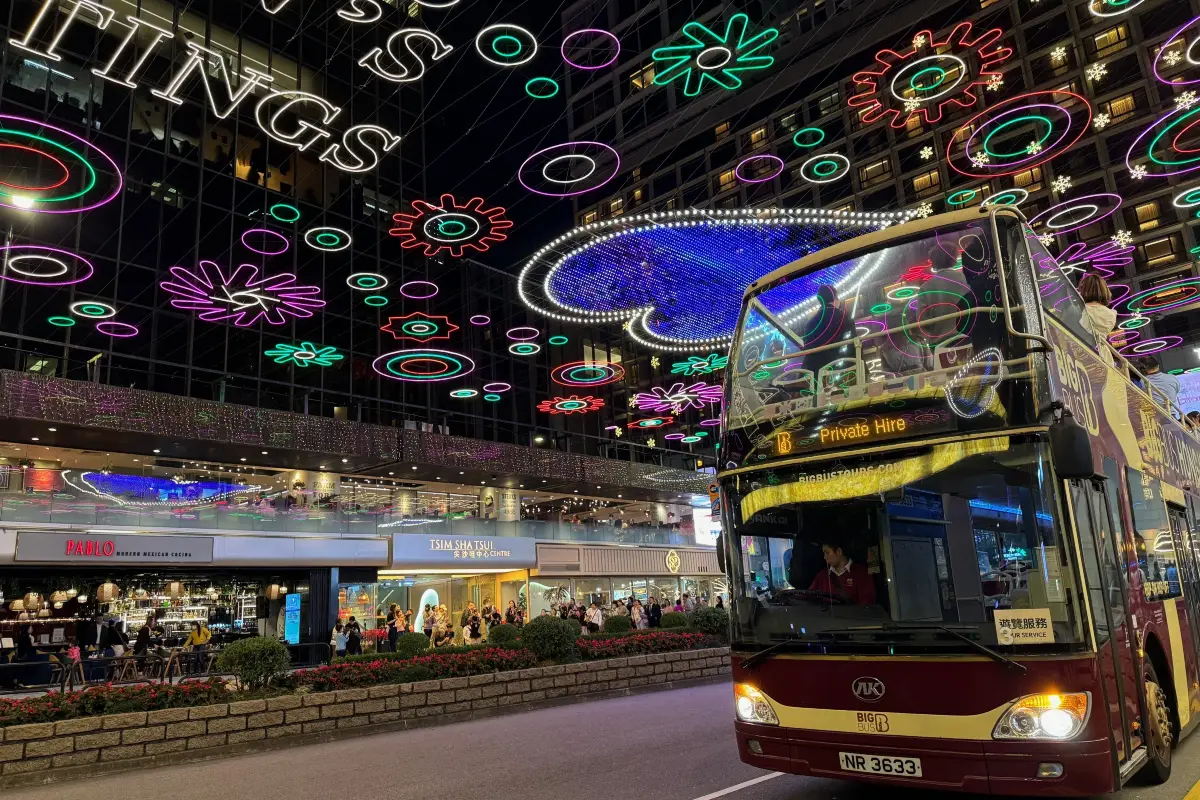 隨著太陽下山,我們帶您感受九龍最繁華的心臟及欣賞九龍的全景!您將會陶醉於彌敦道五光十色的霓虹燈之中,繁華璀璨景色盡收眼底。大家把握機會與親友及至愛乘坐Big Bus 感受九龍尖沙咀區五光十色夜景的樂趣,這璀璨炫目的旅程全程約60-75分鐘,並在尖東海濱長廊出發及結束。